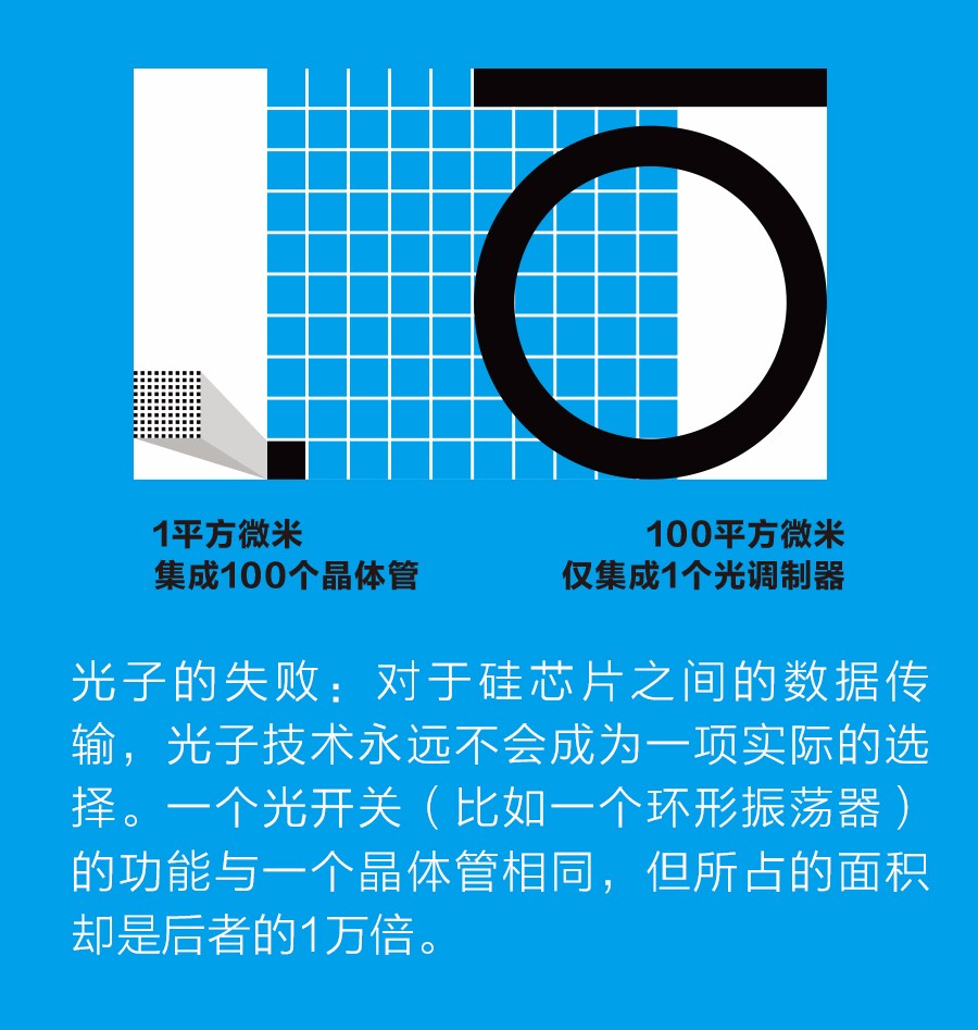 用光子元件替換芯片上的電子元件還存在其他障礙,比如,光子元件并不能夠提供芯片所需的某些關(guān)鍵功能(比如存儲(chǔ))。結(jié)論是光子元件與基本計(jì)算機(jī)芯片功能不兼容。即使不是這樣,用光子代替發(fā)揮同等功能的電子也毫無意義。