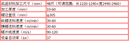 建業(yè)順達機械全自動鋸邊機技術參數: